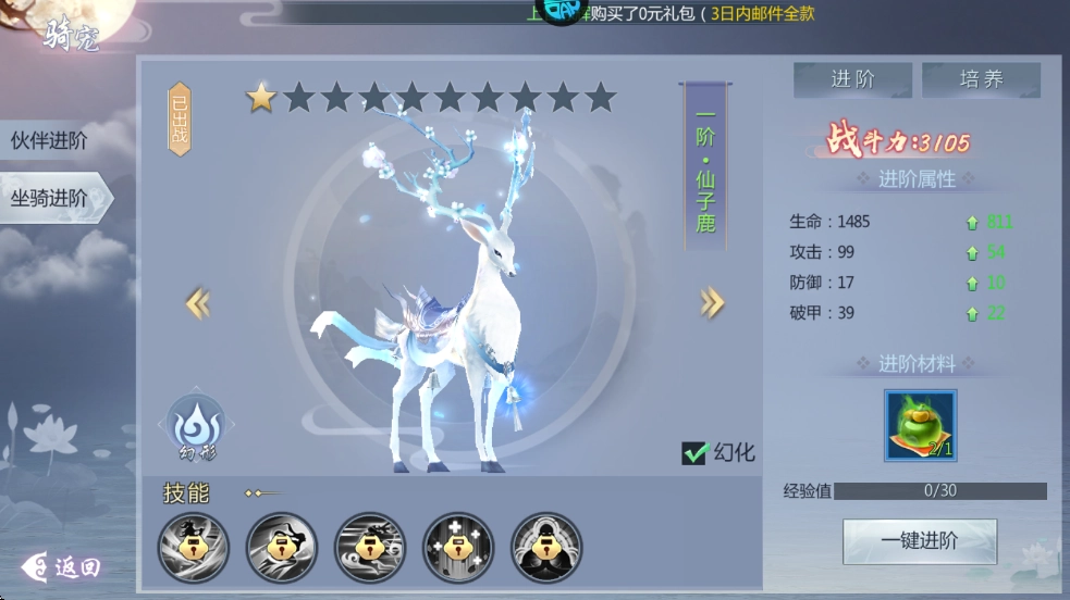4、玩家达到30级时,坐骑功能将解锁。此后,玩家可在地图上使用坐骑,而进阶后的坐骑能显著提升自身战斗力。