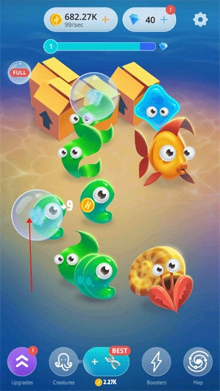 2、除了在下方能够进行增添之外,游戏过程中还会时不时冒出气泡,点击这些气泡就会出现新的物种。