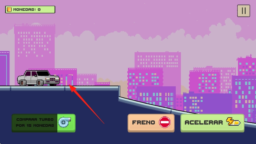 3、当拥有15个金币时,点击左下角“COMPRAR TURBO POR 15 MONEDAS”按钮,花费15个货币购买涡轮,给汽车装上涡轮,增强加速能力,帮助通过后续关卡。
