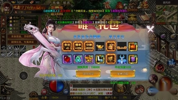 1、一经登录,即刻赠送神装、时光套以及999+武器。