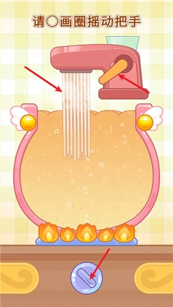 3、接着开火,再转动拉面机的把手,放入适量的拉面。