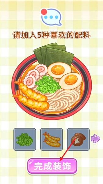 5、浇入汤汁后,可从五种配料中挑选加入拉面,别忘了添加观众要求的配料。