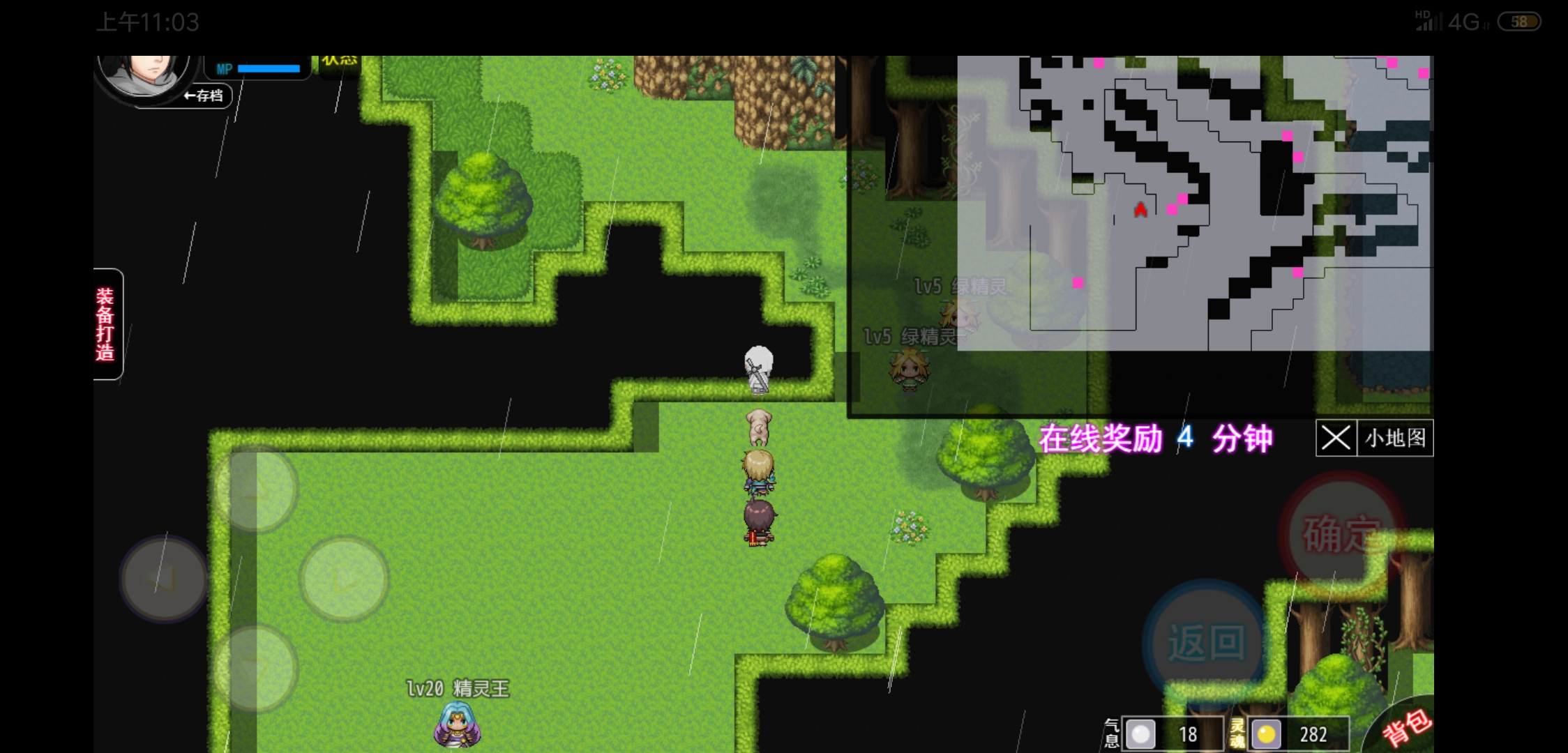 如图,随后前往寻找精灵王。从森林外围一直朝下方行进,进入森林内部后,向左走,接着再向下走就能遇见精灵王。对付精灵王有两种方式:其一,先去升升级,大约到五级就可以,然后再去挑战;其二,要是第一次没能打过,系统会赠送一把 GM 武器,借助这把武器可直接通关。完成精灵王的挑战后,新手村任务便宣告完成。此外,森林内部还藏有时装和隐藏宝箱可供获取。