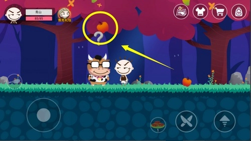1. 轻点牛炖头顶的苹果,苹果便会掉落砸到牛炖。(若点击地面上的苹果,即可自动获取苹果)