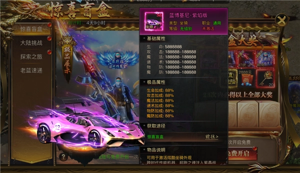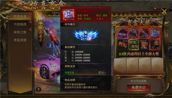 1. 每日首次登录能免费开启一次,后续抽奖需消耗盲盒抽奖券,此道具可通过活动大陆挑战、探索之旅获取。