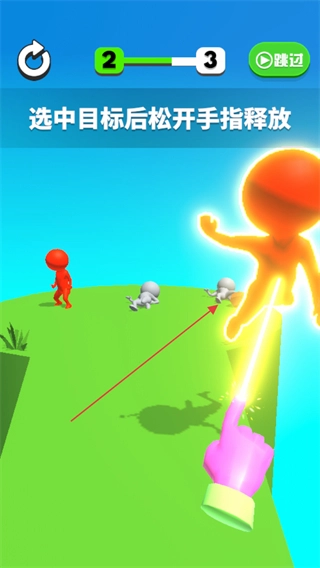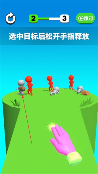 2. 操控粉色的大手抛出石块,对准红色小人,借助石块对他们展开攻击。