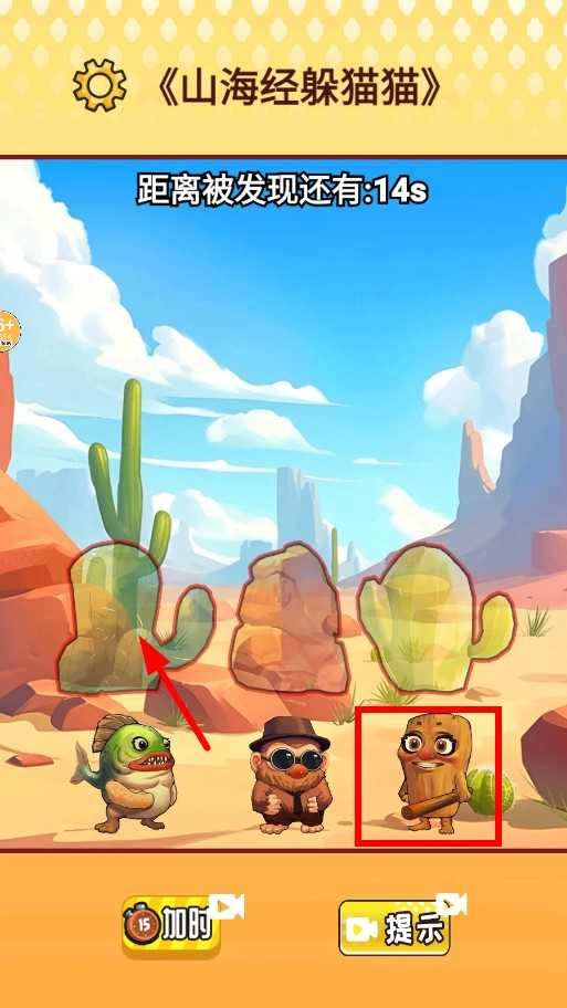 2、倒计时归零后,若角色未能成功隐藏好,就会在场景中暴露。这时,你可以点击加时按钮或提示按钮,争取获取更多时间或者隐藏线索。