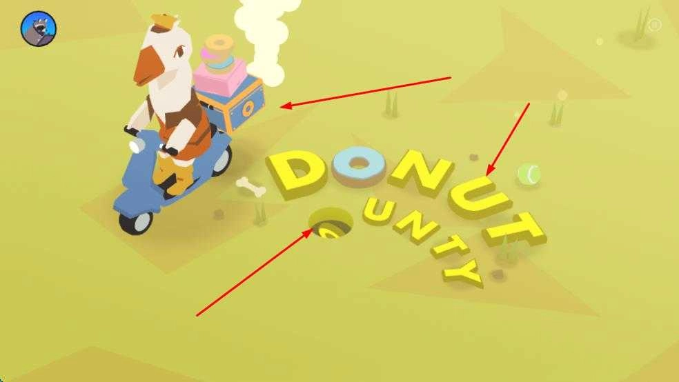 4、在户外场景里,操控角色驾驶摩托,注意观察DONUT COUNTY字母以及洞,借助洞吞噬物品来推动游戏进程。