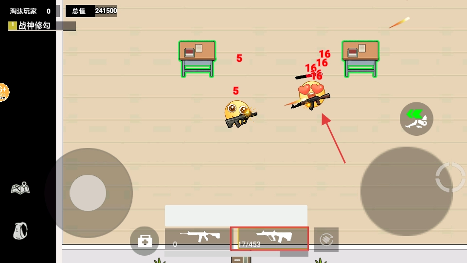 4、战斗过程中,要精准瞄准敌人进行射击,同时充分利用课桌作为掩护。时刻留意弹药数量【17/453】,一旦发现弹药不足,需及时补充弹药。