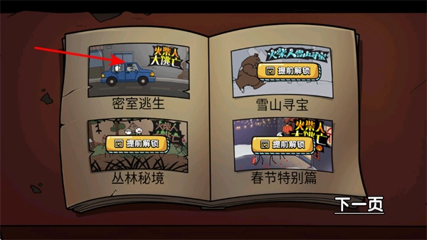 1. 挑选密室逃生的关卡,踏入火柴人密室逃脱的冒险场景,开启游玩中的逃脱任务。