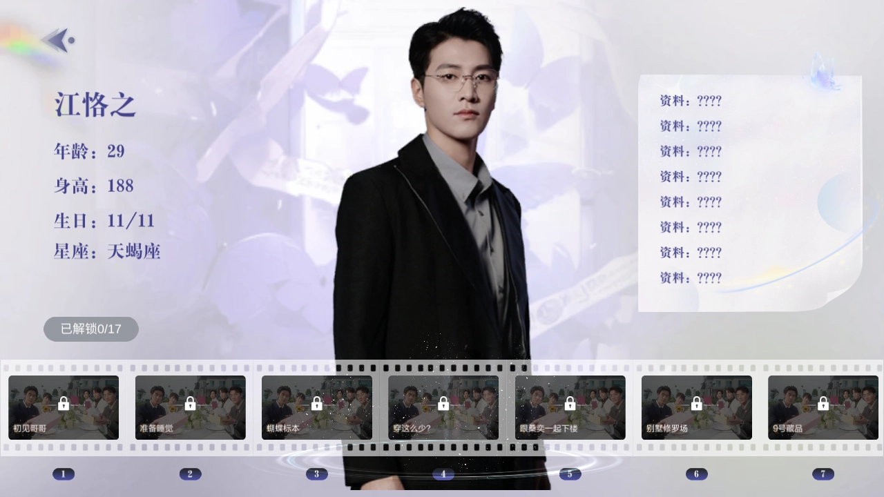 5、还能够查看男主角们的相关信息,后续会以更详尽的方式进行解锁。