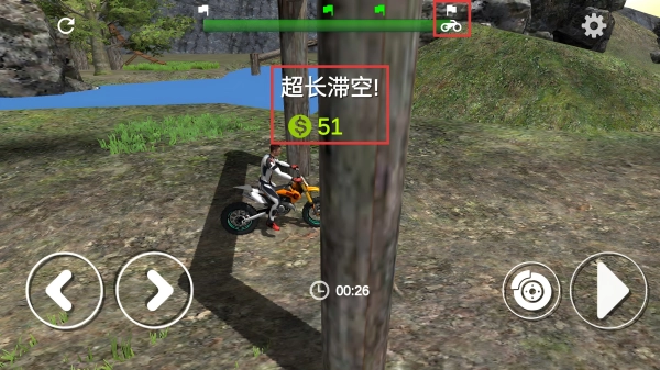3、在飞跃障碍过程中,保持摩托的姿态,完成诸如【超长滞空】这类特技动作,就能获得金币奖励。