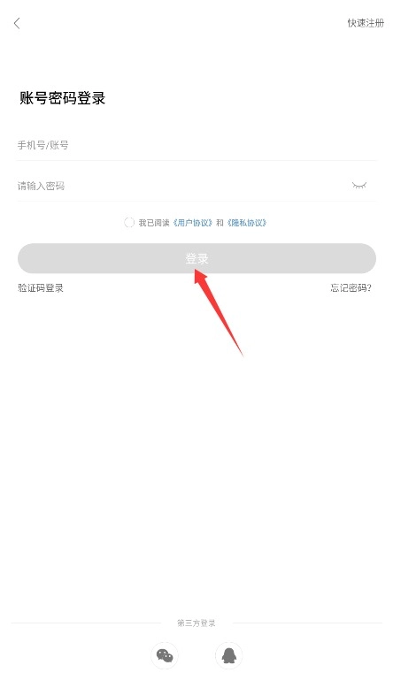 进入应用的步骤是:先输入手机号或账号,接着输入密码,然后勾选同意协议,最后点击登录按钮。