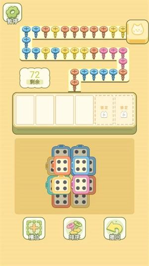游戏里设置了不同难度的关卡,玩家得用消除四个螺丝的玩法来挑战关卡,通过关卡后能得到螺丝之类的道具。这些道具能用来兑换和开启更多的家具和装饰物品。