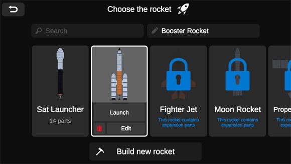 点击后,既可以选择已有的火箭执行发射操作,也能通过点击“build new rocket”来创建全新的火箭。