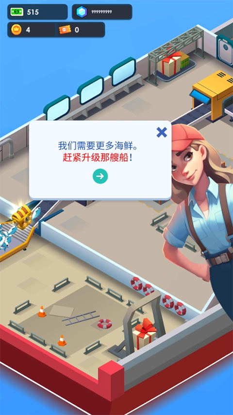 玩家可以通过赚取金币来升级渔船与工厂设备,还能开设店铺,推动自己的海鲜事业进一步发展。