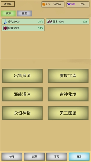 在这款以文字为核心载体的修炼题材游戏里,玩家将化身一方霸主,通过持续产出各类资源来壮大自身势力。资源生产所需的基础材料,可通过参与不同难度的探险挑战获取。为了解锁更强大的能力与更丰富的玩法,玩家需要逐步提升自身的修炼境界。游戏操作极为简便,全程以点击交互为主:每次指尖触碰屏幕,都是在为实力增长积蓄能量;而突破境界的修炼过程,也仅需一次轻松的点击即可完成,让你能随时开启属于自己的强者之路。