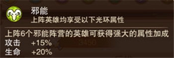 下面是纯色单阵营的光环效果展示,能发现各个种族的光环加成力度都不低,特别是暗影和光明种族表现尤为突出。但需要提醒的是,不太建议新手玩家在游戏前期选择单阵营阵容,原因在于前期可获取的英雄数量相对有限,而培养同阵营的6个英雄需要消耗大量同一种族的英雄作为升级材料,很容易出现“狗粮”短缺的情况。