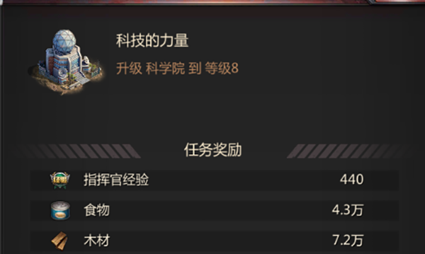 科学院与智能系统研究院的核心提升方向,同样聚焦于建筑速度与研发速度的优化,其目标在于助力我们能在7天内升级至21级,从而完整地领取到求生之路的所有奖励。