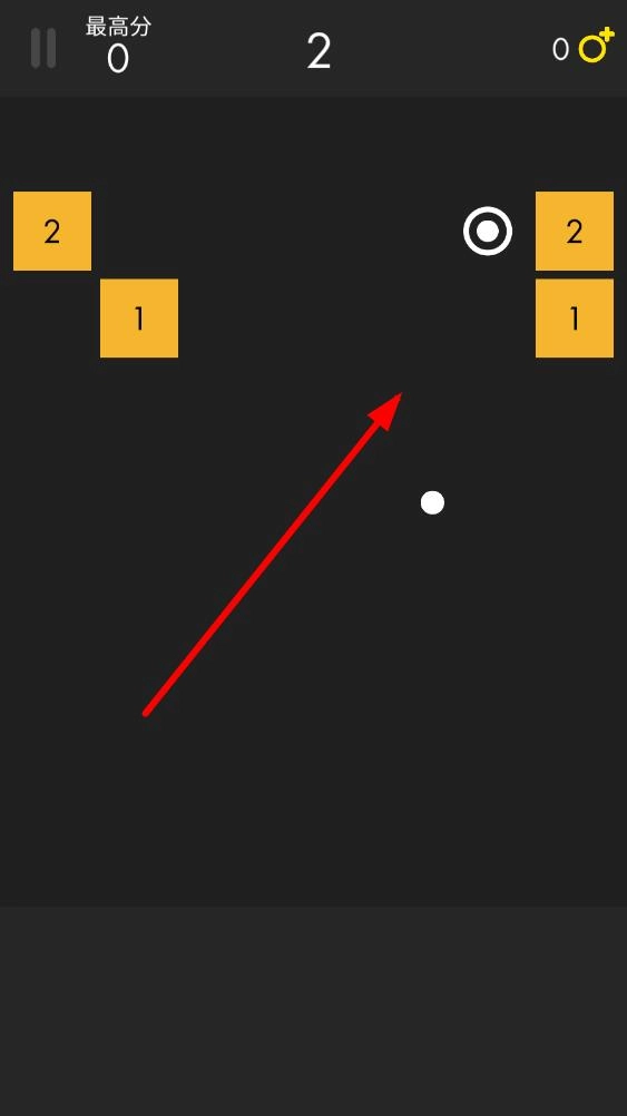 进入游戏后,用一根手指长按小球并拖动,屏幕会出现轨迹辅助线,松开手指就能发射;一开始需要击碎前方的基础方块来熟悉操作,积累足够分数后就能开启新关卡。