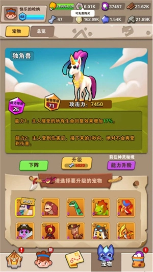 宠物使用宠物碎片来解锁和升阶,升阶后解锁宠物能力