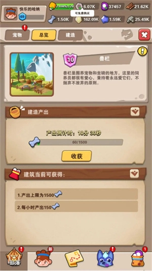 升级兽栏,还可以缩短兽粮产出时间和产出上限
