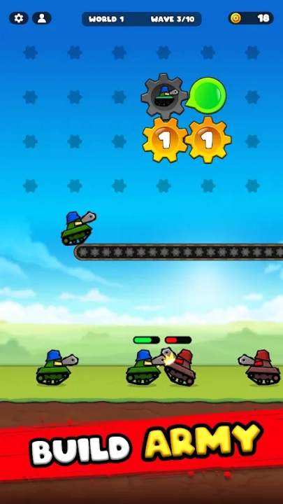 齿轮战争坦克英雄是一款卡通风格的休闲益智放置游戏。在游戏里,玩家通过放置齿轮来生产坦克,这些坦克会自动和敌人战斗,玩法颇具趣味。感兴趣的玩家可别错过,快点击开始体验吧。