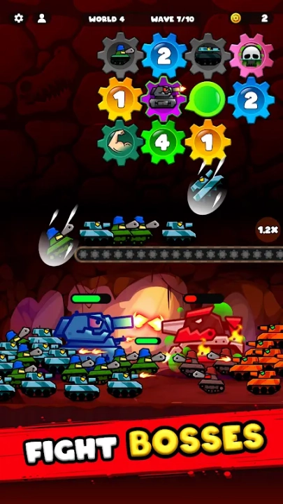 在《齿轮战争:放置坦克英雄》里,坦克会自动发起攻击,开启一场激烈的战斗。你不用一直守在屏幕前操作,坦克们能自己主动攻击敌人。随着时间慢慢过去,战斗会变得越来越激烈,敌人的攻击波会一波接一波地涌来,你得保证自己拥有足够的坦克数量和强大的战斗力,才能持续抵挡敌人的入侵。你能不能在这场没有终点的战争中,战胜敌军,取得胜利呢?