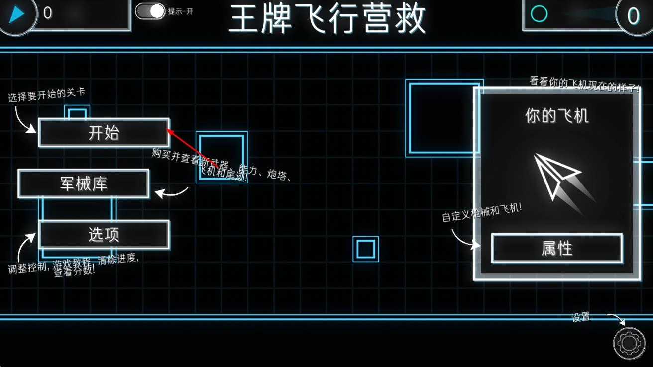 进入游戏后选择飞行器和关卡,借助虚拟摇杆或者滑动屏幕来操控飞行方向,避开障碍物并靠近营救目标。
