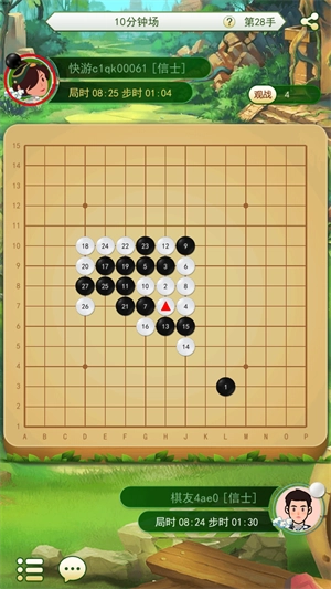 分为:棋力评测场、5分钟场、10分钟场、30分钟场,随时匹配无需等待;