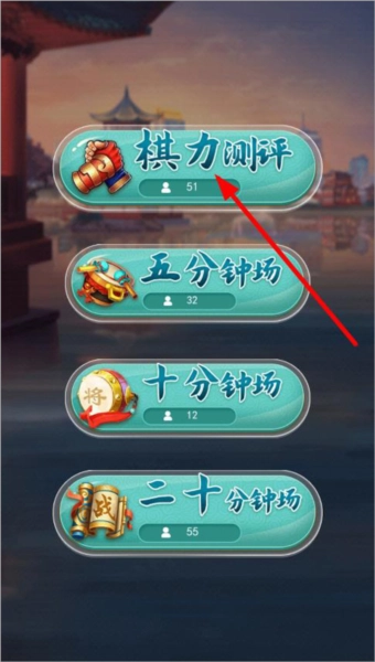 进入对弈界面后,你会看到棋力测评、五分钟场、十分钟场和二十分钟场等选项,选择任意一种玩法点击就能开启对战。