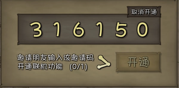 选择第一个选项(为自己开通联机)的话,会直接生成一个邀请码,只要邀请一位朋友就能开通。