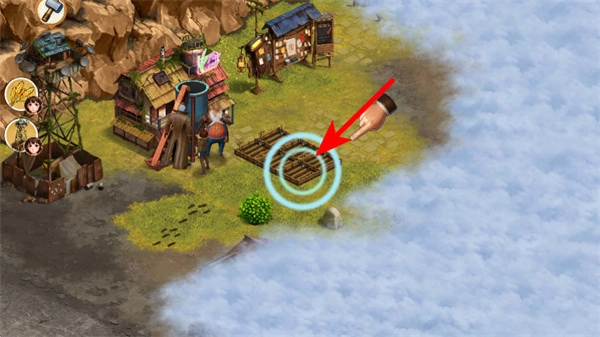 修复完成后,点击红色箭头所指的新互动区域木架,即可触发下一个场景互动,推动流程继续进行。