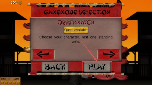 选择游戏模式的具体操作如下:在“GAMEMODE SELECTION”界面选中“DEATHMATCH”模式,随后点击“PLAY”按钮即可进入角色选择环节。