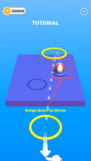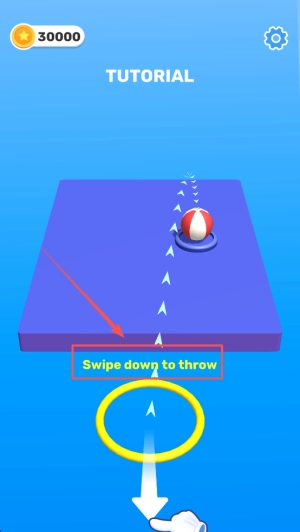 进入教程:在30000分的界面,按照提示“Swipe down to throw”进行下滑投掷操作。