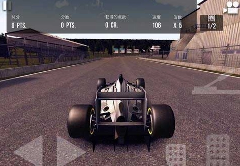 游戏的操作并不复杂,界面上设有5个对应行车功能的图标:左侧是控制转向的左转和右转图标,右侧则排列着后退、前进以及加速图标。玩家只需点击这5个图标即可操控赛车,这种操作方式简单直观,新手也能快速上手。