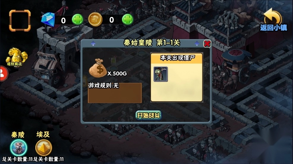 点击右下角的塔防关卡,开始关卡挑战。