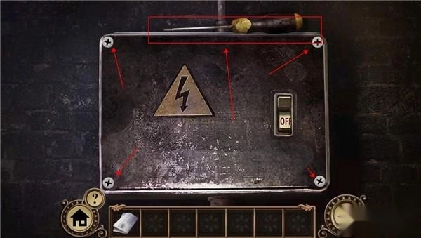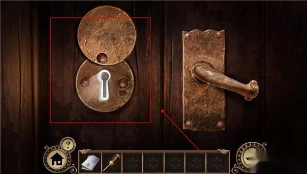 点击门把手,看到有提示钥匙在外面时,我们就返回。