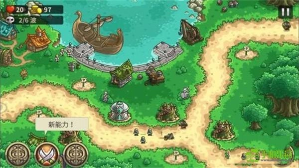 防御塔依旧是和以前皇家守卫军里最经典的那四个,各自对应着不同类型的怪物。这里还是建议大家多布置一些弓箭塔,之后再搭配少量的士兵塔、魔法塔和炮塔就足够了。