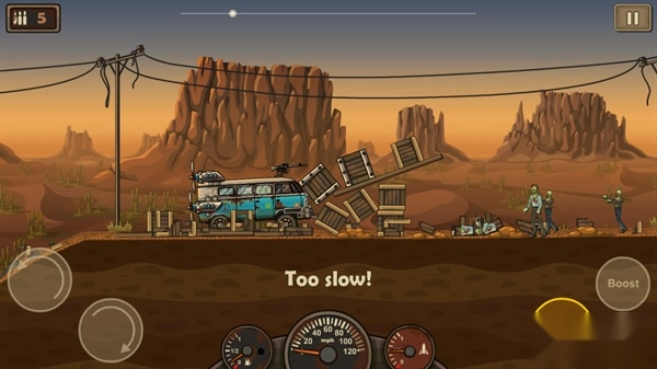 死亡战车是一款以末日为背景的赛车冒险游戏,在游戏的多样画面与玩法中,玩家将驾驶各类汽车一路向前冲刺,把沿途的僵尸尽数撞飞。不过会有障碍物阻挡前进路线,因此玩家得在沙漠里开启一场刺激的狂飙,借助收集到的资源解锁更多玩法内容,把汽车的性能提升至极致。