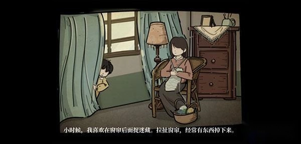 有东西掉落下来,这明显是把提示直接送到眼前了。回到卧室后,反复拉动并关上床头的窗帘,直到记忆碎片掉落出来,然后把它捡起来。