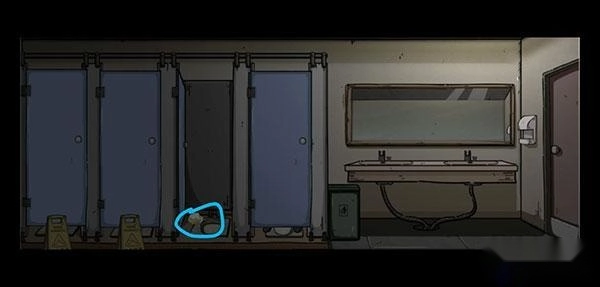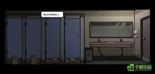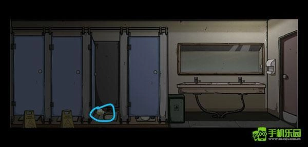 把地上的纸条捡起来,墙上的提示写着“镜子”,然后拿着捡到的纸条去厕所照镜子。