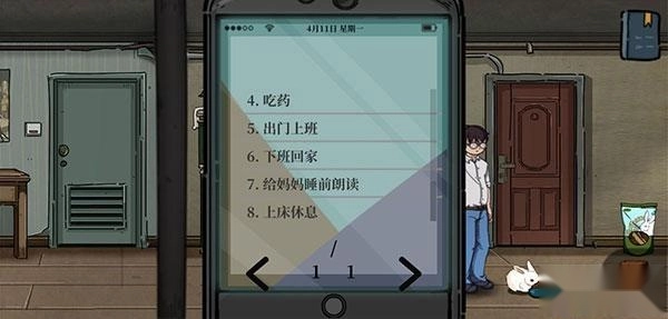 下拉备忘录,桌上有个装着抗抑郁药的棕色小药瓶,得吃完再去上班——这里能看到男主角把药吃完了。