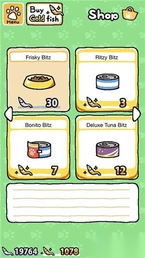 我的建议是:刚开始玩的时候,可以根据自身情况适量购买黄色食盆的猫粮,这样能帮助你更快地积累鱼干,尤其是银鱼干的储备量。