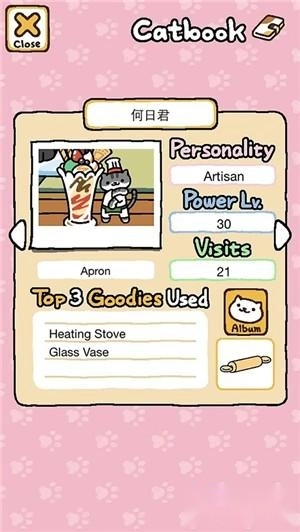 下面一部分是这只猫咪最爱的道具排行榜,旁边配有相册入口以及它已经送给你的礼物。