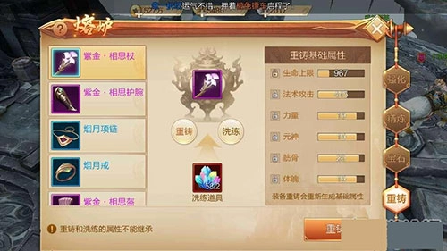 注意!!!装备重铸时属性是随机生成的,如果当前装备已经拥有较高属性,不建议进行重铸操作,否则有可能导致属性降低!