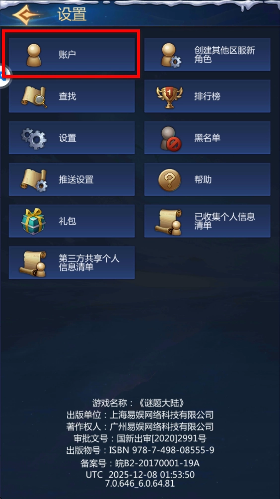 进入游戏的设置或系统这类界面后,往最下方找找,就能看到切换账号或者登出游戏账号的功能。
