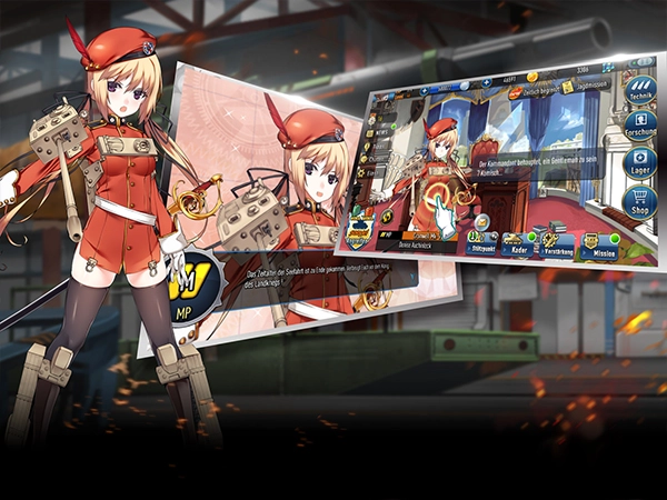 游戏内剧情内容十分丰富,为玩家呈现了诸多精彩各异的情节,且质量颇高,有效提升了玩家的阅读沉浸感。游戏制作团队颇为用心,不仅画风精致美观,角色立绘也可爱吸睛;值得一提的是,早期开发阶段团队还专程前往法国坦克博物馆实地考察取经。这种二次元风格的美术设计,能为玩家带来一场愉悦的视觉享受。