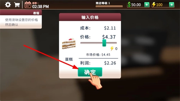 点击货架上的标牌,通过滑块调节商品价格,确认无误后点击确定按钮,即可完成定价操作。