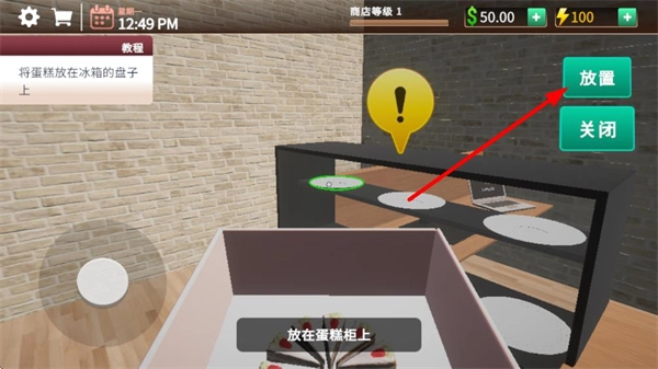 取出产品后,把蛋糕放到冰箱的盘子上,完成商品上架,使商品进入可售卖状态,以便后续顾客挑选购买。